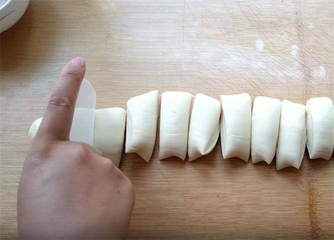 3.我们在手上和案板上抹少许油,把醒好的面直接搓成长条,下10到12个面剂,不要揉面,面起筋的话延展性就不好了。
