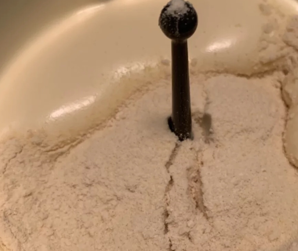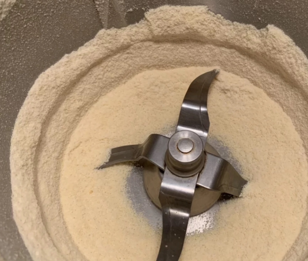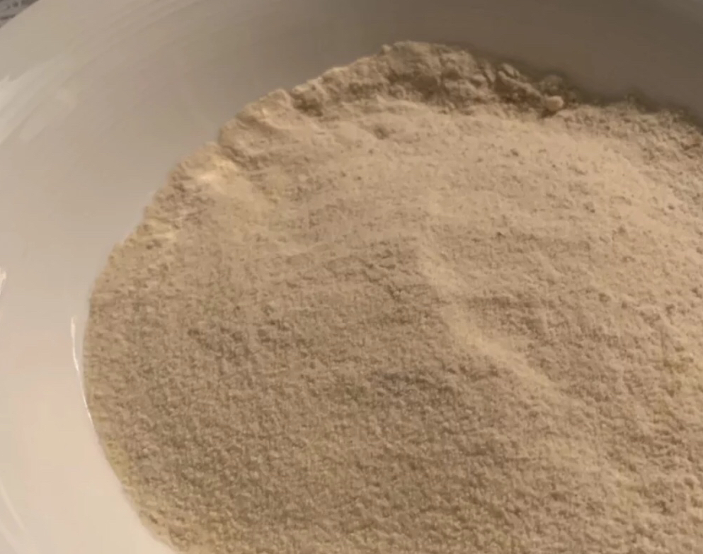 4.打磨成细沙状倒入容器内,然后将锅刷洗干净,要保证国内没有一丁点水分