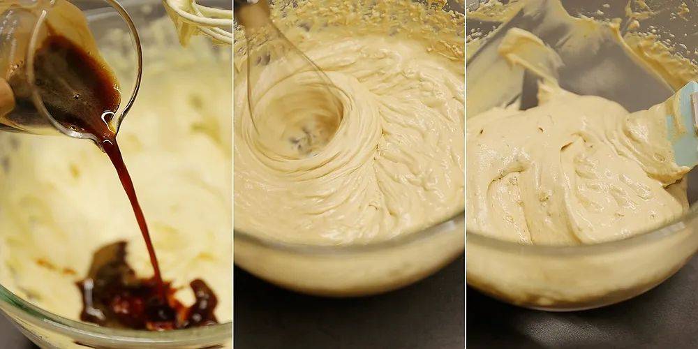 搅打以后,面糊成为了非常稠厚细腻的质地。