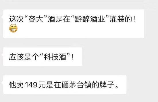 这位爆料人还称,容大在黔醉“灌装”的信息,来自于某个容大酱酒的经销商,可信度很高。爆料人认为,郝鸿峰最擅长的就是用互联网思维卖酒,这次用149元的互联网价位来搞酱酒,虽然有可能卖爆,但最终的结果大抵是“钱酒仙网自己赚走,锅让茅台镇来背”。
