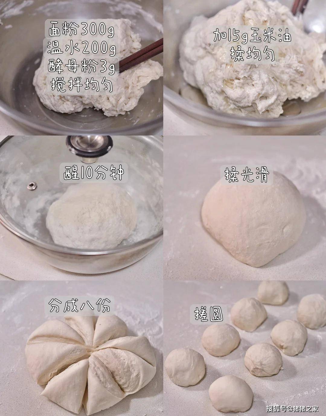 1.面粉300克,酵母粉3克,温水200克(手测不烫手就行),用筷子搅和搅和,成絮状就差不多了。