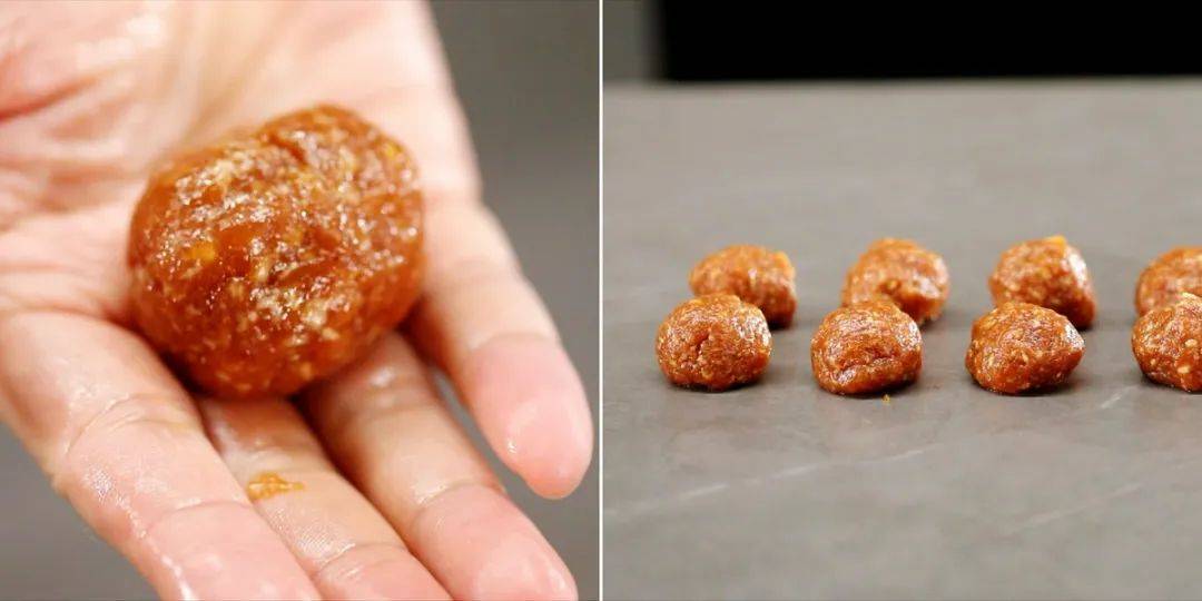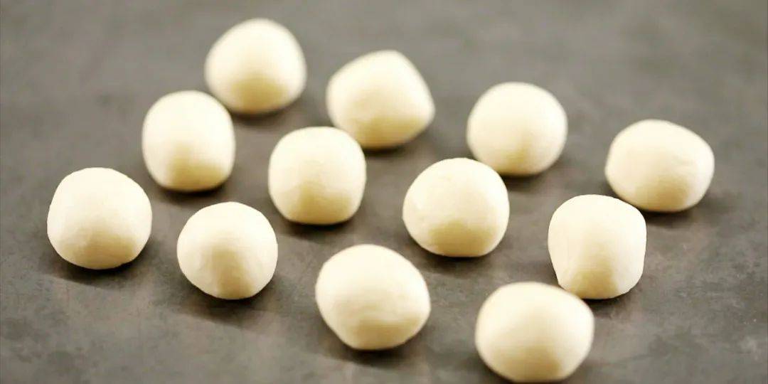 小份油酥面团直接揉圆成为小球。油酥面团不需要盖保鲜膜也不需要松弛哦。