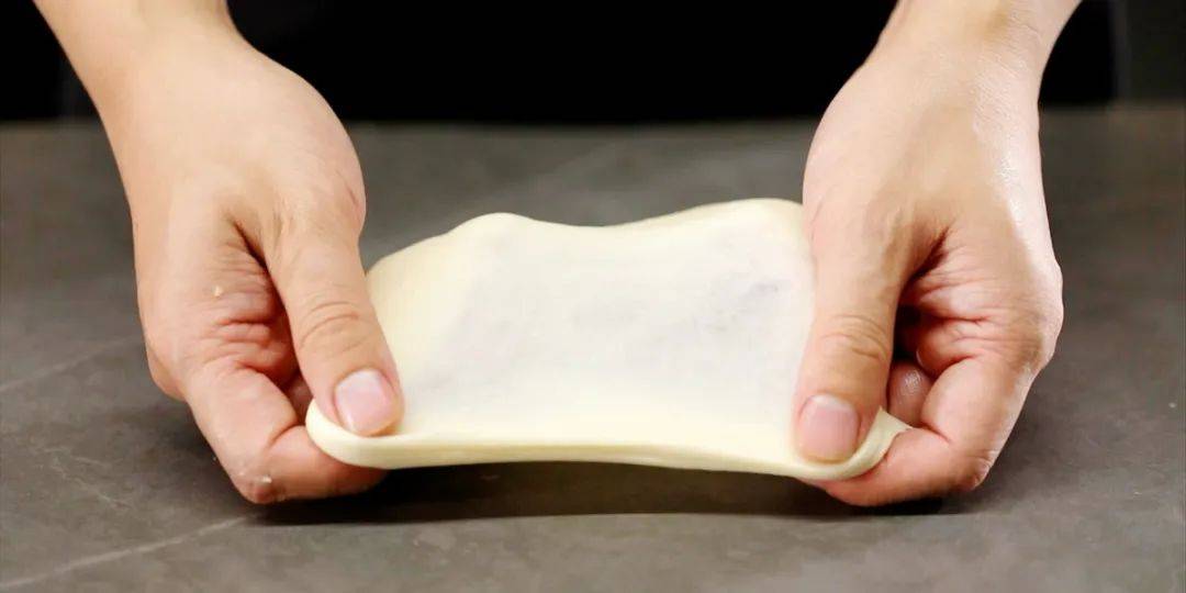 揉好的水油皮面团轻轻抻开可以形成薄膜,就说明揉到位了。