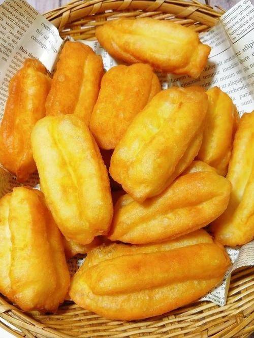 - 炸制:锅中倒入足够的食用油,大火烧至六七成热(约180℃),转中小火。将醒发好的油条生胚轻轻拉长后放入锅中,炸至油条浮起且表面金黄酥脆即可捞出沥油。炸制过程中要勤翻动油条,确保受热均匀。