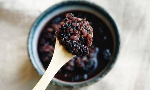 2.先在砂锅中放3碗清水,煮沸后放入白糖,再将捣烂的大米、黑芝麻、桑葚浆缓缓倒入,煮成糊状即可食用。