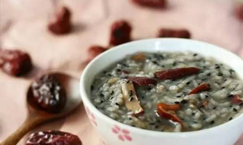 材料:黑芝麻末20~30克,红枣20g,粳米60克。