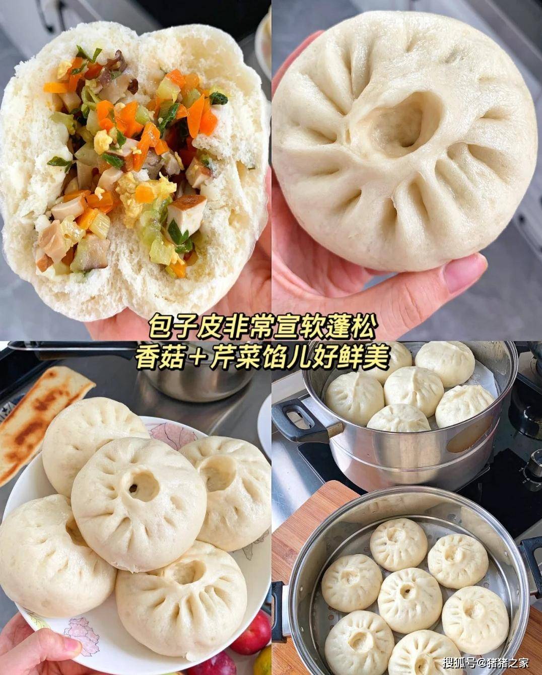 当打开蒸锅的那一刻,一股诱人的香味扑鼻而来。轻轻咬下一口,首先感受到的是外皮的柔软,接着是馅料的鲜美。香菇的浓郁、胡萝卜的清甜和芹菜的爽脆,三者完美地融合在一起,每一口都是对味蕾的极致挑逗。