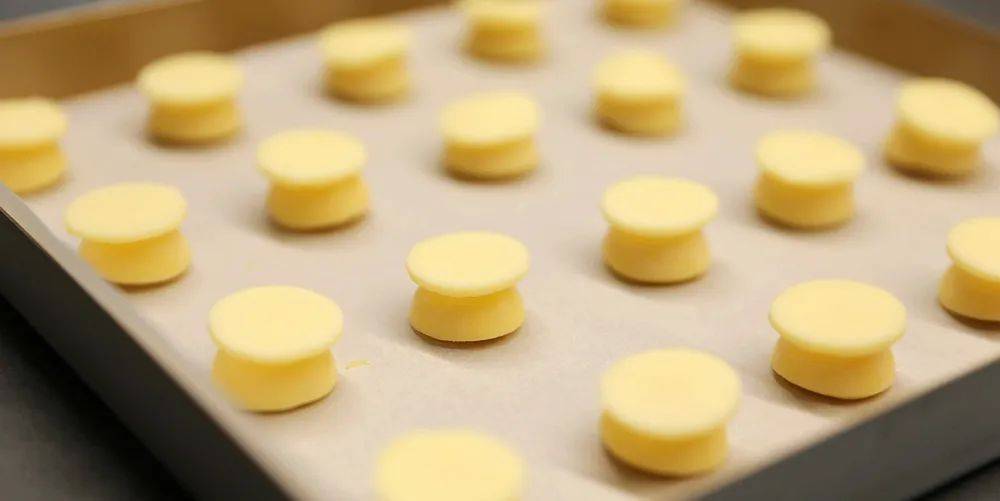 后续的酥皮做法完全一致,酥皮必须冻硬以后才可以切割并放在泡芙面团上哦。