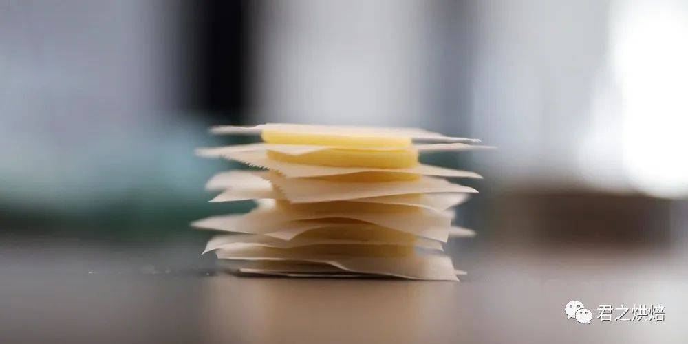 酥皮面团也可以提前冷冻哦!像这样用剪成小张的油纸间隔开来,用密封盒或密封袋装好,然后放入冰箱冷冻(-18℃)保存就可以了!