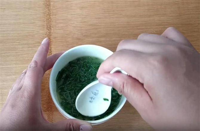 2.接下来我们来制作葱油酥,小葱叶一把,选择葱叶是因为它比较柔软,防止戳破饼皮,而且味道更好,干面粉20克,加入三克盐,我们把小葱切碎放入碗中,锅中倒入40毫升的食用油烧开,下入花椒粒炸出香味,我们过滤掉花椒粒,把热油直接浇在葱花上炸出香味,这样调制出的葱油酥特别美味。