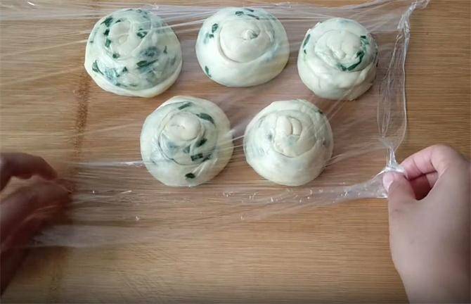 7.做好的饼坯再松弛十分钟,这样更容易擀开,不破坏它的层次,而且口感也更加柔软,按压不回弹即可。