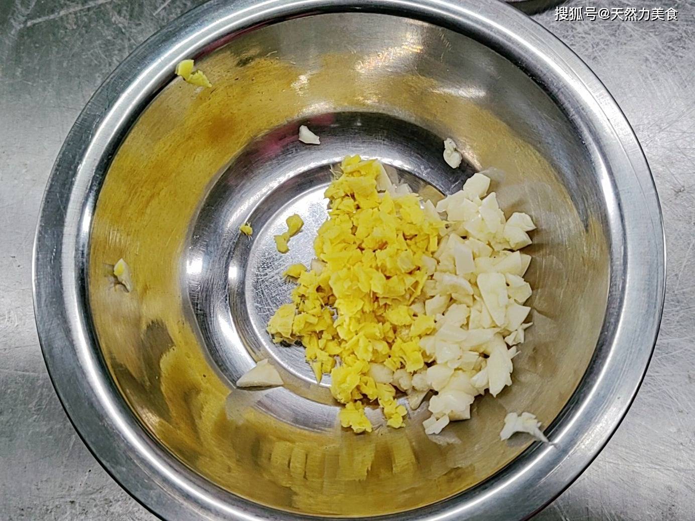 6、接下来我们就可以来准备配料,蒜子是用来增香的,用刀拍散后切成蒜末备用。生姜是用来去腥增香的,把生姜拍碎后切成姜末备用。香菜是用来提香配色用的,把香菜切成3厘米的小段备用。