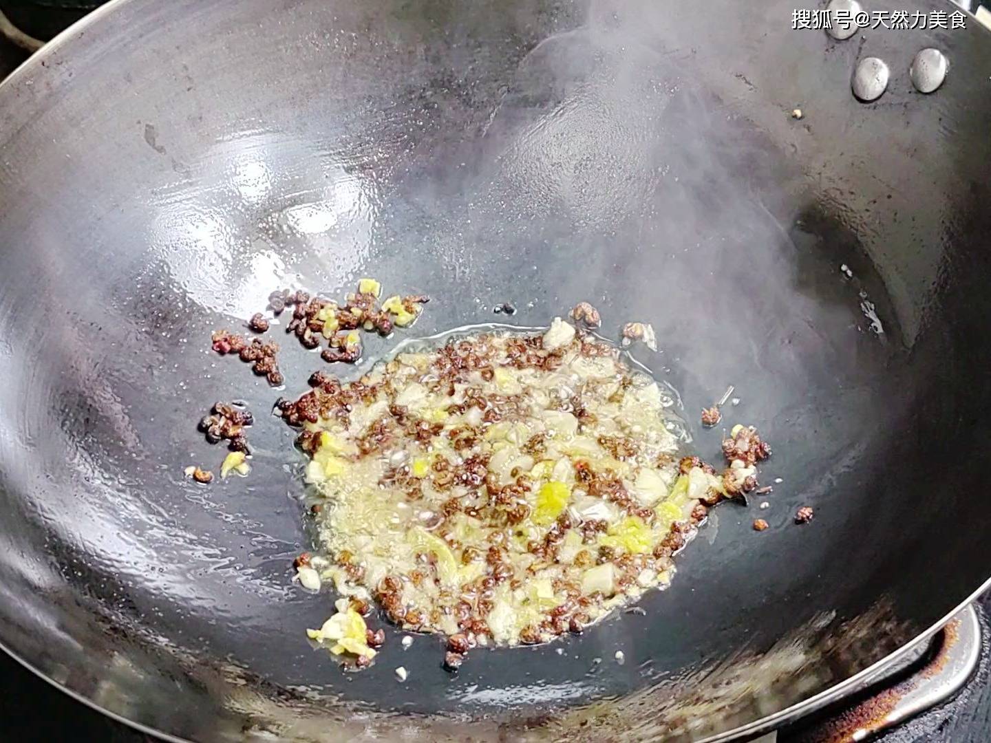 3、锅留30克余油,加入10克花椒,用小火煸炒10秒,先把花椒的香味炒出来。接着把葱姜末一起倒进锅内炒出香味,最多有10秒左右香味就能出来。