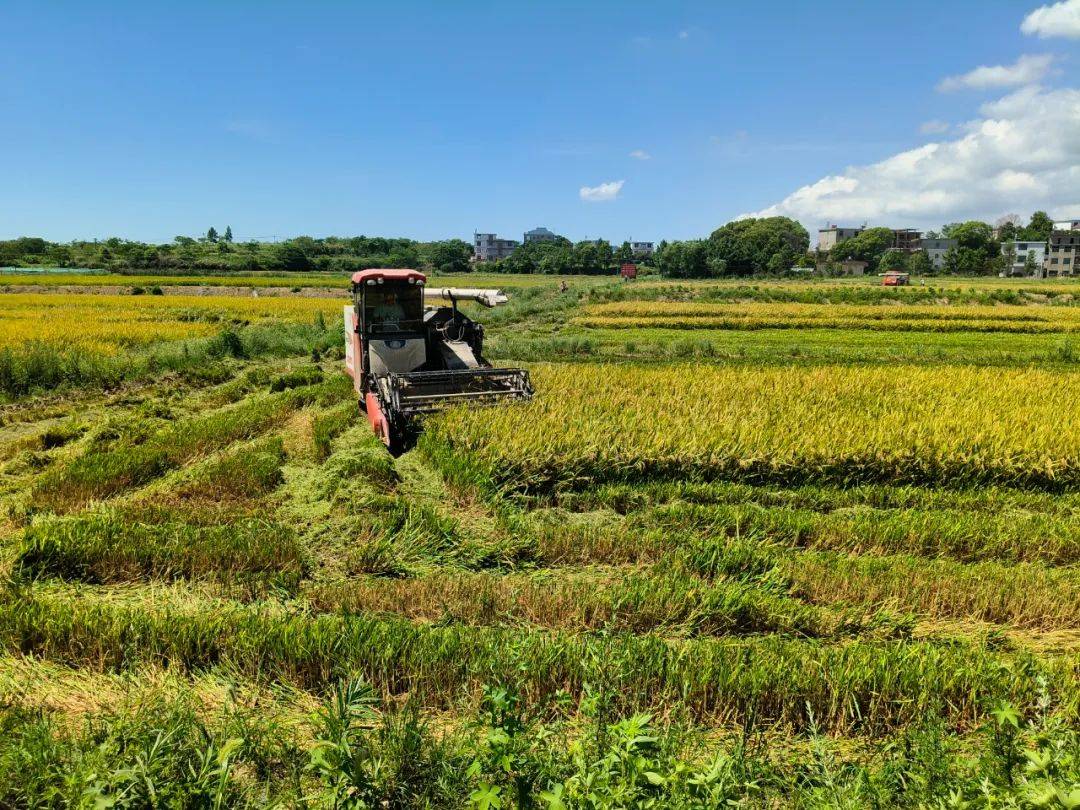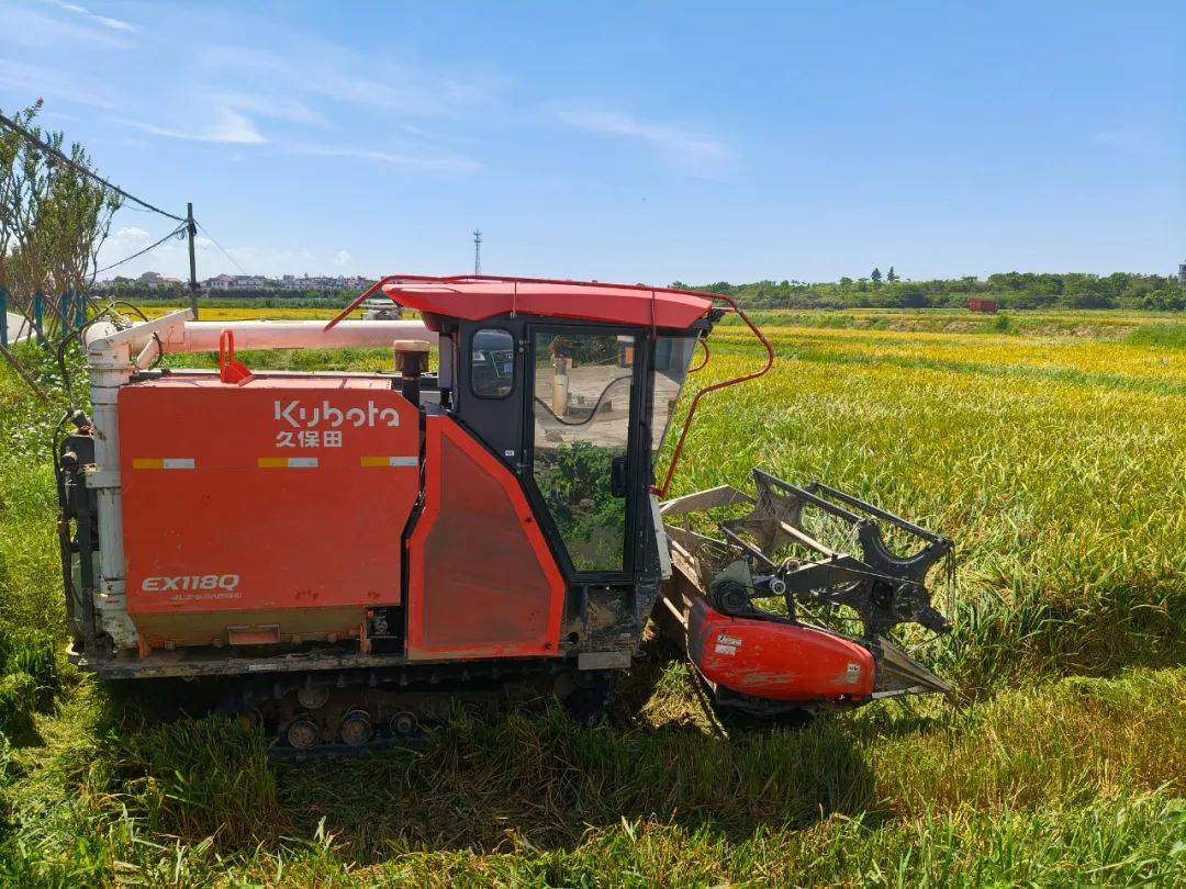 当前为了应对台风“格美”可能带来的风雨影响,解决早稻采收时间紧、任务重的问题,种植基地全面采用机械化收割,完成了传统人力“双抢”到农机“双抢”的转变。2023年桥北村整村推进高标准农田建设,使桥北村田块整齐划一,田埂、沟渠、机耕道横平竖直,更利于机械化、规模化作业,为今年的“双抢”时节抢出了大把时间。截至目前,桥北村共完成早稻收割500亩。