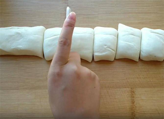 4.我们把面直接放在案板上,搓成长条,下6到8个面剂,不要揉面,面起筋的话,它的延展性就不好了。