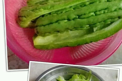 3.然后腌好的苦瓜放清水里洗几次,沥干水份