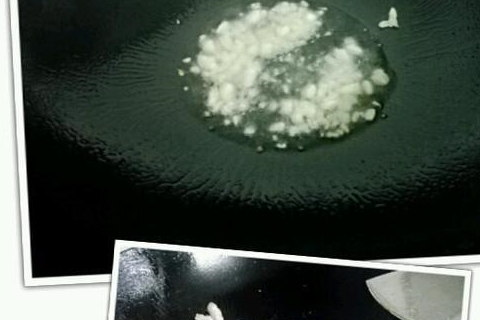 4.锅预热,放入4勺子花生油,油温热后放蒜蓉爆香,再倒入瘦肉炒变色