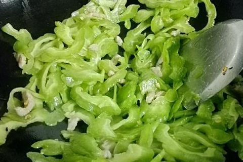 5.放入苦瓜炒软