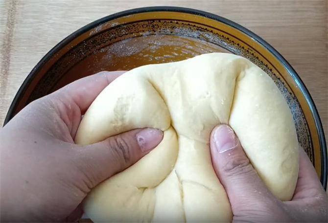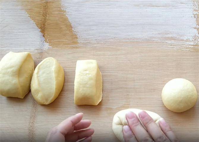3.接着我们像这样翻转按压,把面剂揉成圆形的光滑小面团,一是使面剂起筋,增加它的硬度和层次感,二是防止二次醒发的时候变形。