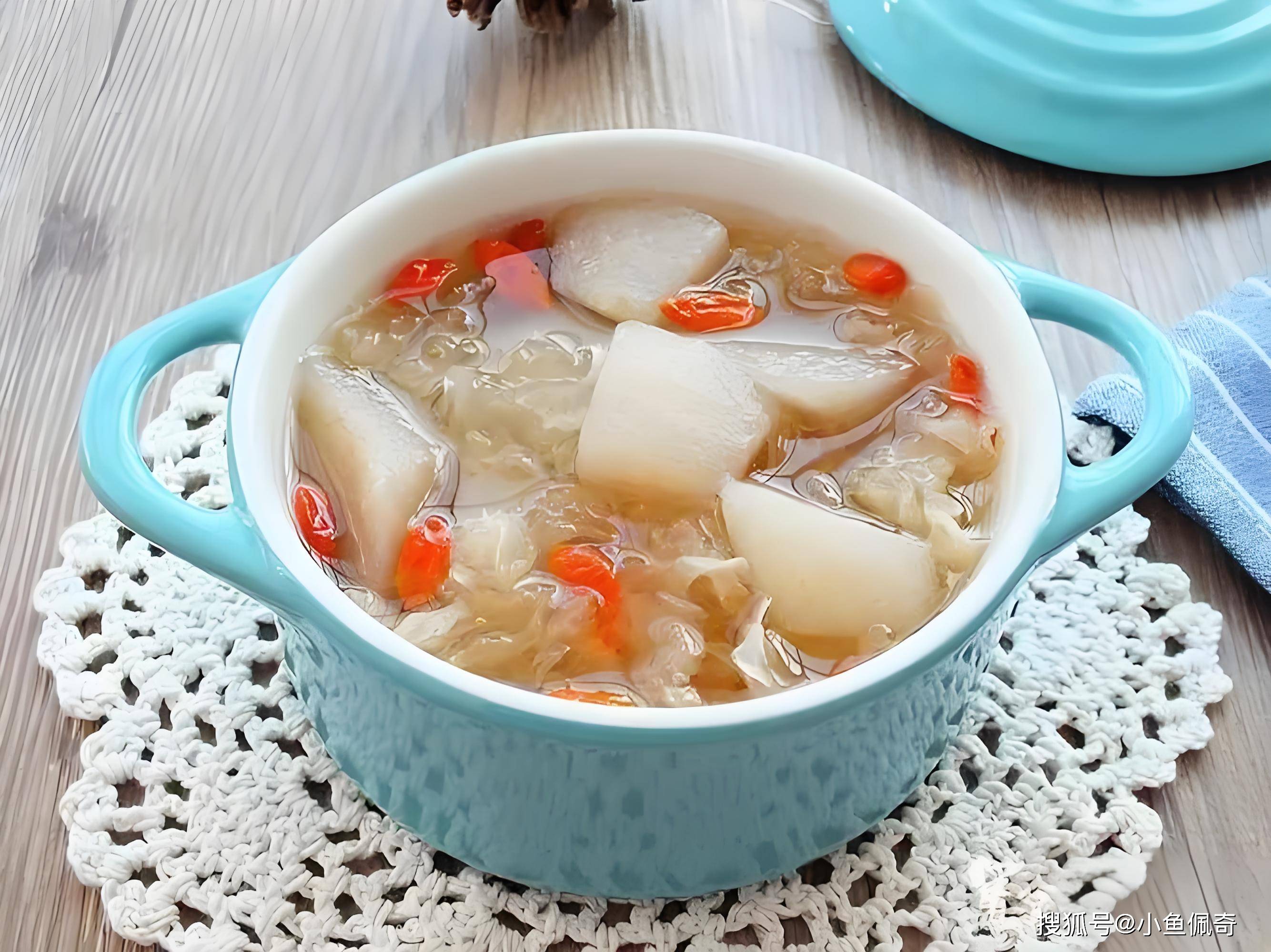 材料 :银耳1朵,雪梨1个,枸杞适量,冰糖少许。