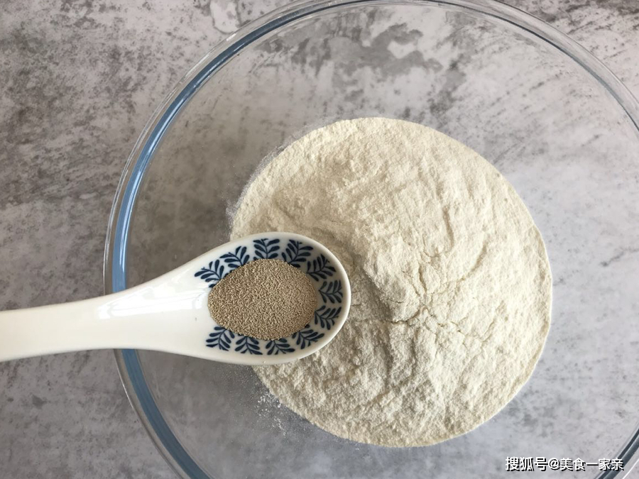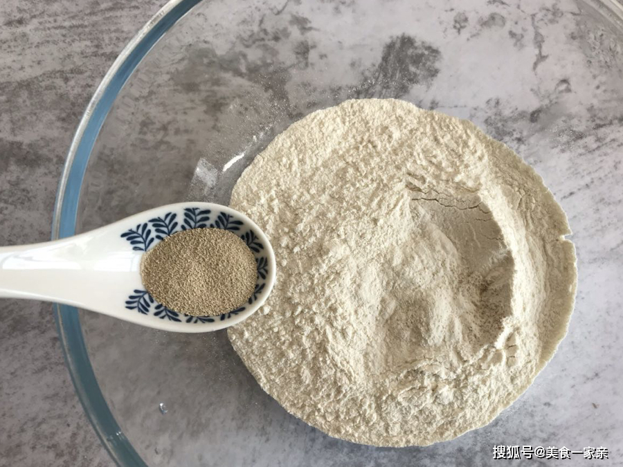 1.首先将200克面粉称重后放入大碗,加入2克酵母粉