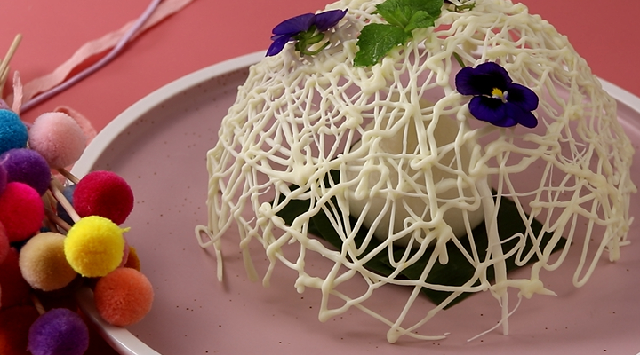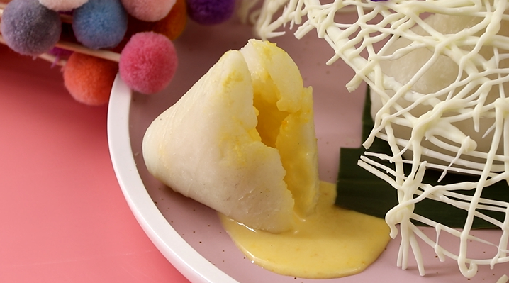 最后的成品是不是很漂亮?经过简单的摆盘,粽子瞬间变得高逼格,上面白色的网状是白巧克力做的。