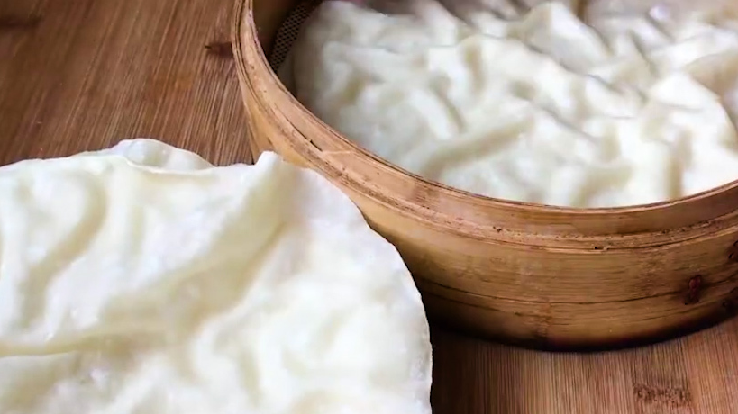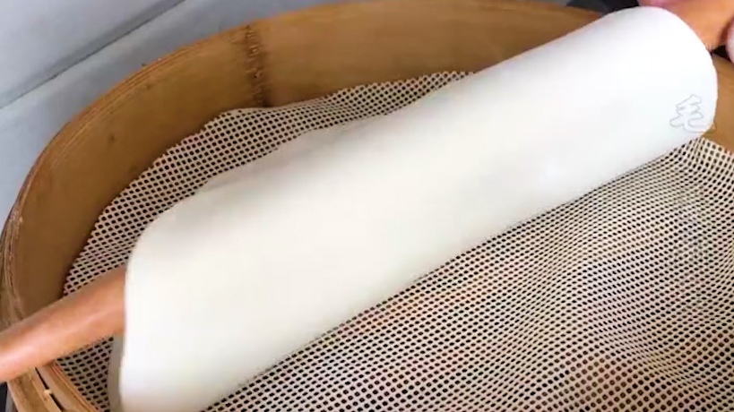面粉别做饺子了,教你懒人新吃法,一蒸一裹,比吃肉还香,锅里面的水提前烧开,然后直接把擀好的薄饼放进去蒸笼中盖上盖上,再去擀下张饼。按照同样的方法把所有的饼都擀好,放上去之后,再盖上盖子蒸5分钟就可以出锅了。
