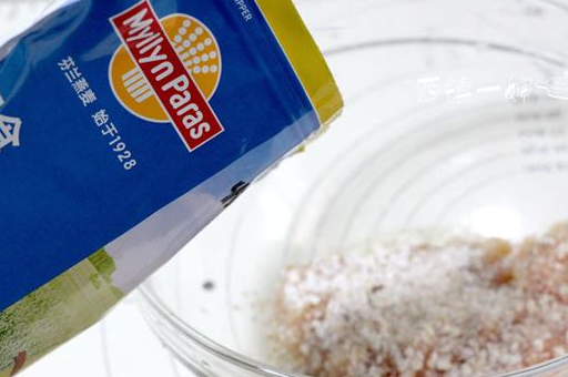 4、倒入一个蛋清。再倒入即食燕麦片。