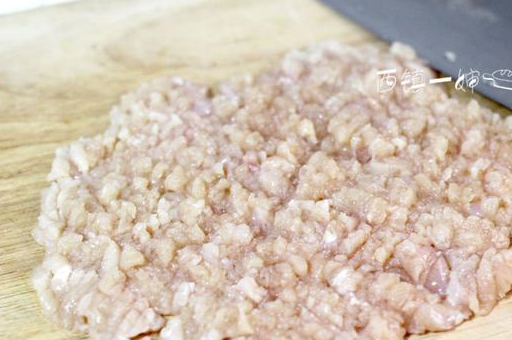 2、将鸡胸肉先剁成肉馅。