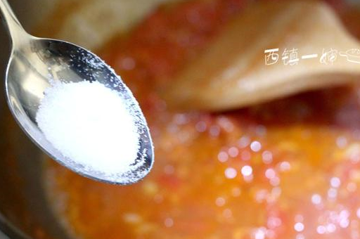 12、加入盐和糖调成番茄酱汁