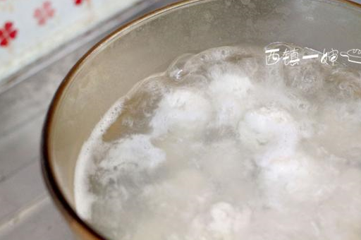8、小锅中烧开水,煮到鸡肉丸都浮起来就可以了