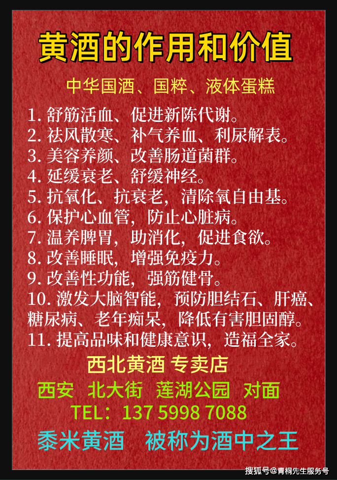 黍米黄酒,经国家权威机构“北京营养源研究所”检测认定,含有19种氨基酸,13种维生素,9种矿物质等,被酒专家和营养学专家誉为“酒中营养软黄金”,常饮北宗黄酒有助于强筋壮骨、祛风驱邪、和脾养胃、滋阴壮阳、美容养颜,益寿延年。
