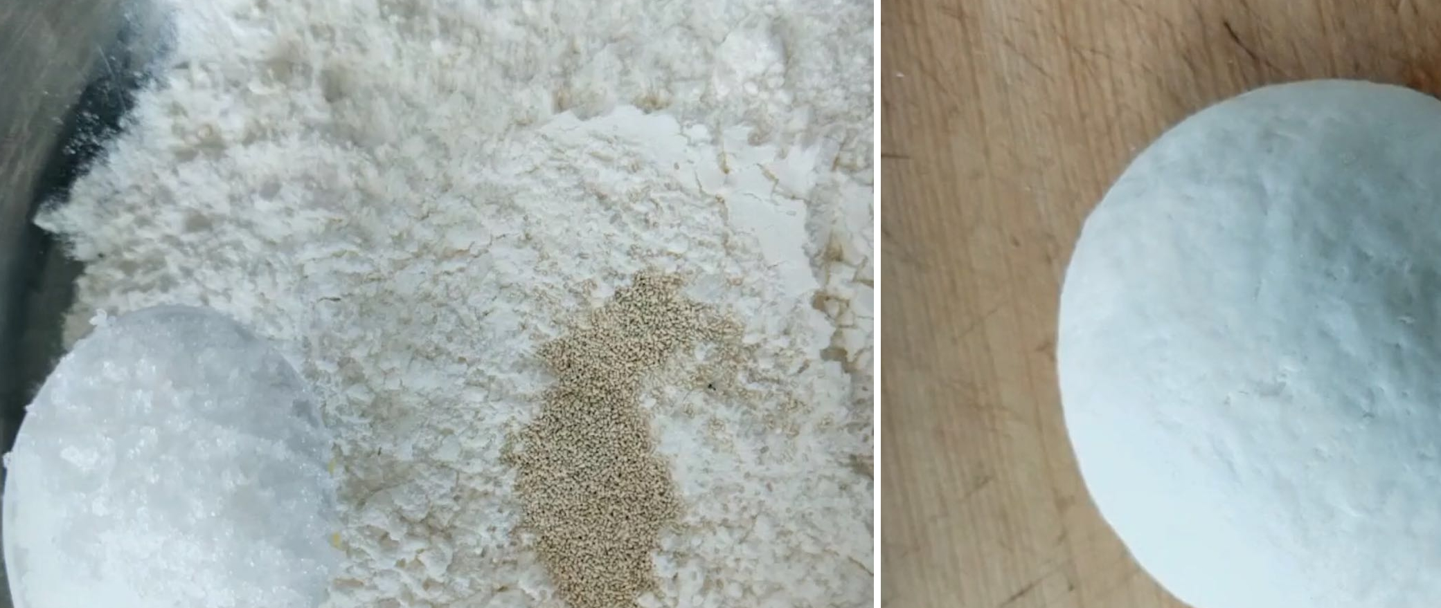 第一步:300克的面粉,加入3克的酵母,(如果是新手建议再加2克泡打粉,成功率会非常高),再加白糖40克,用温水揉成不沾手的面团,放置温暖处发酵两倍大