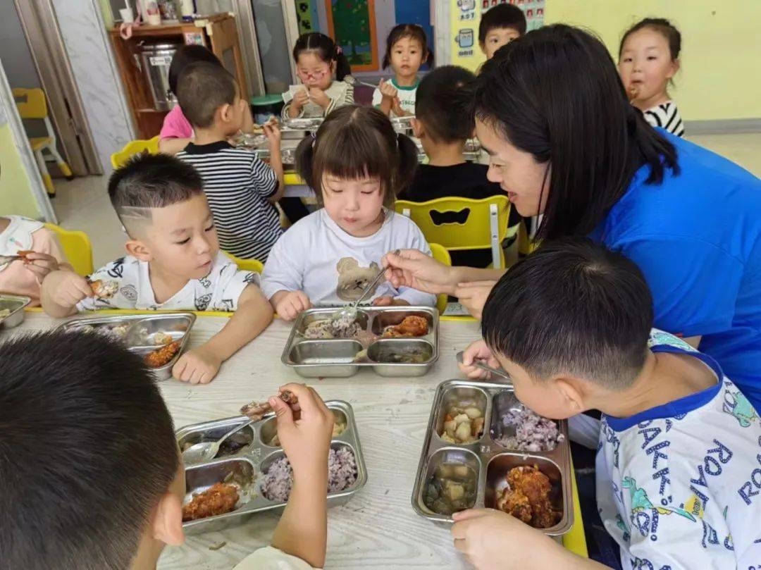 午餐时间,老师与志愿者们结合孩子们的年龄特点,通过讲述《浪费粮食的小鸡》等故事来让孩子们明白粮食的来之不易,理解节约粮食的重要意义,教育引导孩子们在生活中要学会珍惜粮食。随后,根据每个孩子的情况提供适量的饭菜,争做“光盘小达人”,让每个孩子都能感受到“光盘”的自豪和快乐。