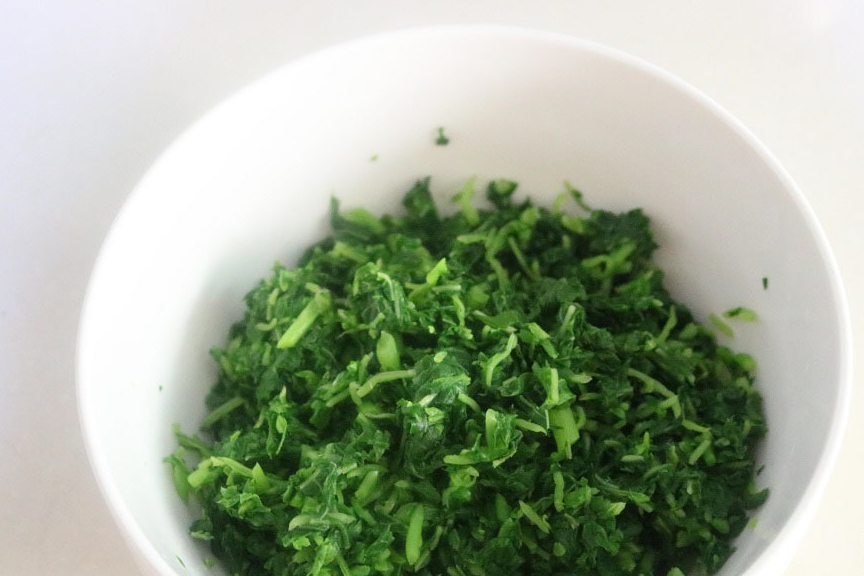 6,淘凉后的苋菜沥干水分,放在菜板上切成末。
