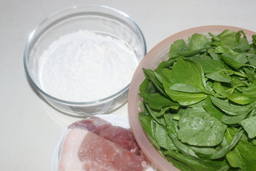 【材料】面粉/猪肉/苋菜/葱/姜