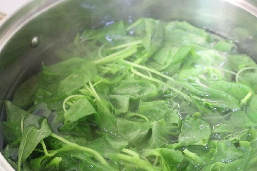 5,起锅烧水,水烧开后倒入苋菜,待锅内水再次煮沸,把苋菜捞出用凉水淘凉。