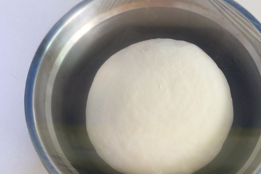 1,空盆内加适量水,加1小勺盐化开,然后加入适量的面粉和成软硬适中的面团。盖上保鲜膜,醒面15~20分钟。