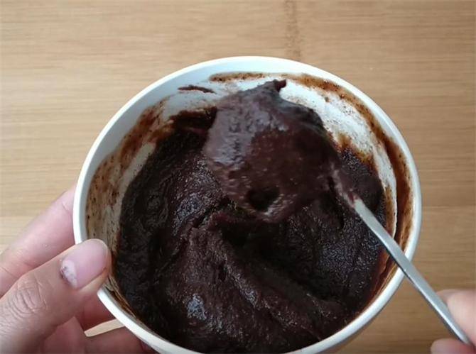2.接下来我们把60克豆沙馅,用清水像这样泄开,到这种粘稠程度就可以。