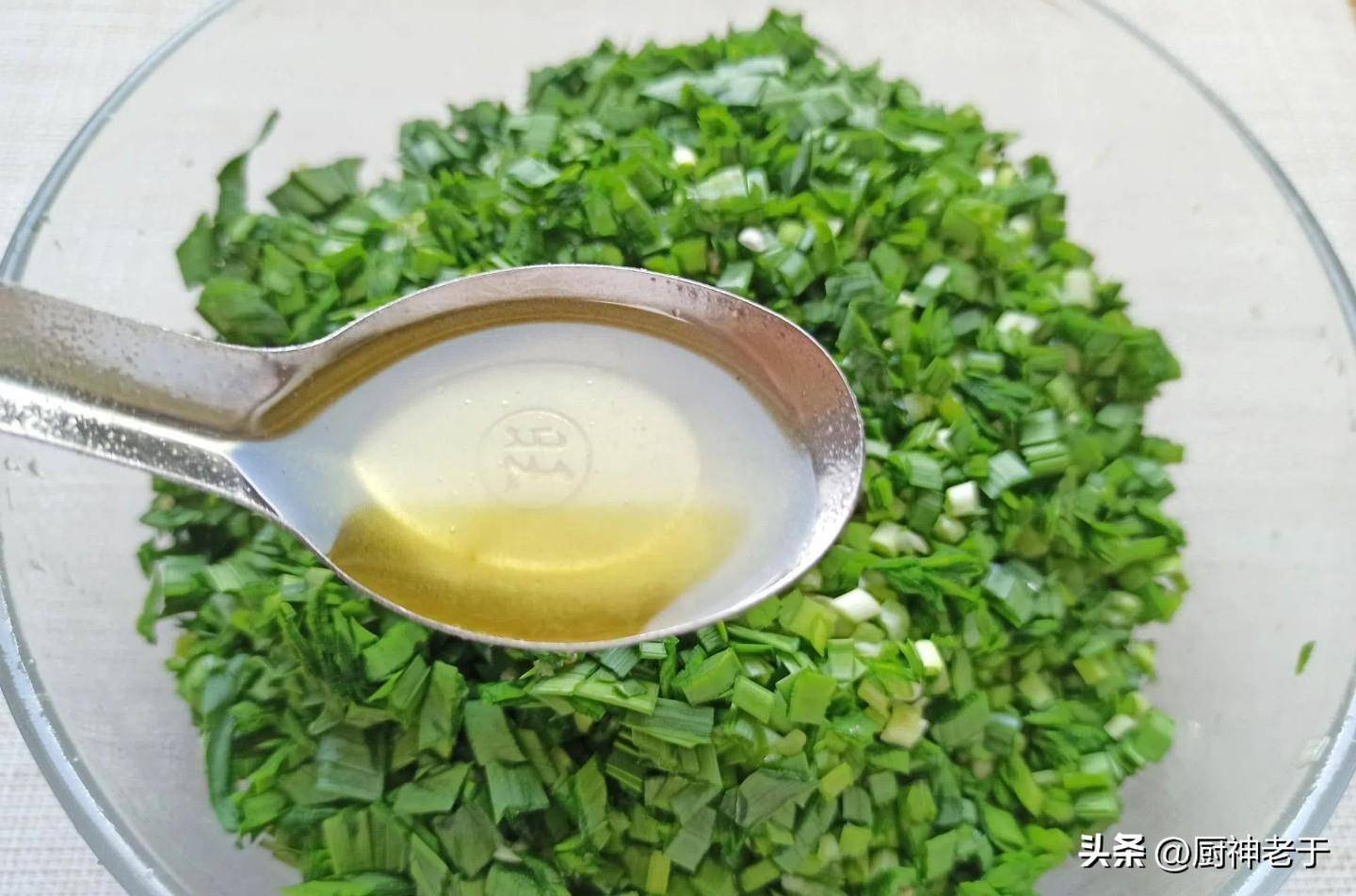 调韭菜鸡蛋馅:谨记2放原则 一放:熟花生油