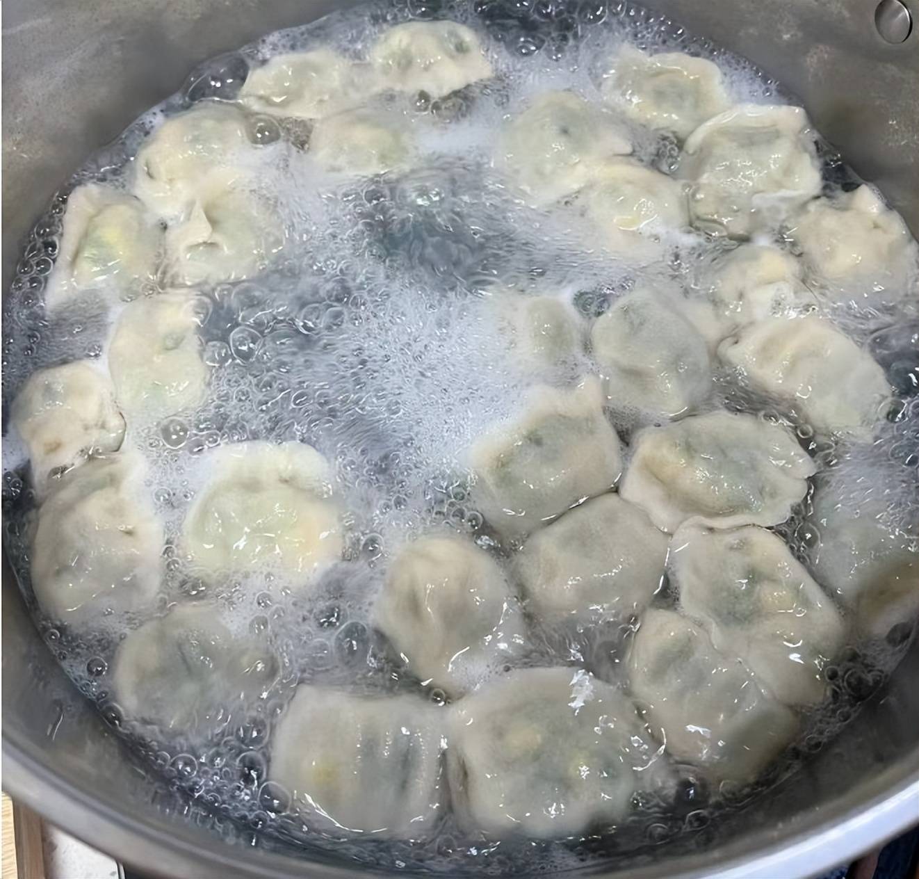 12、锅里加水煮沸,加入少许盐一起煮,下入包好的饺子下锅煮沸,兑入一碗冷水继续煮。反复3次左右饺子漂浮起来熟透即可。