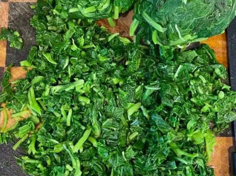 4、焯水好的野苋菜放入冷水里投凉,捞起挤干水切碎待用。