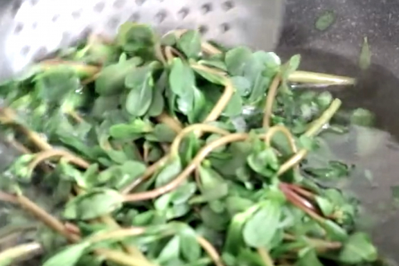 第二步:把马齿苋清洗干净,可以多洗两遍,把上面的泥土都洗干净,在锅里烧开水,把马齿苋放进去焯3分钟,沥干水分作为备用。
