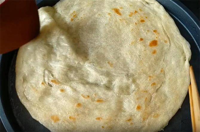 9.由于烙制的时间短,饼的水分保留,所以说饼才会特别柔软,这个饼可以直接食用,也可以卷上土豆丝,都特别美味,在东北被叫做卷饼。