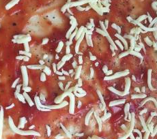 6、在面皮上涂上披萨酱或者番茄酱,撒上黑胡椒,然后是芝士。