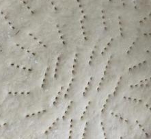 5、把擀好的面皮放进盘里,用叉子插上洞。