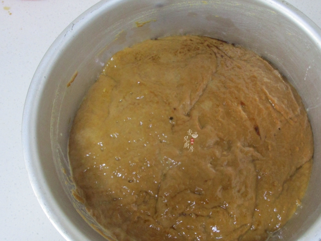 这点量可以做一个7寸模具,如果没有模具也没关系,用乐扣玻璃保鲜盒或者其它任意耐高温的都可以。只是要记住,先用油刷一刷,这样就很容易脱模了。