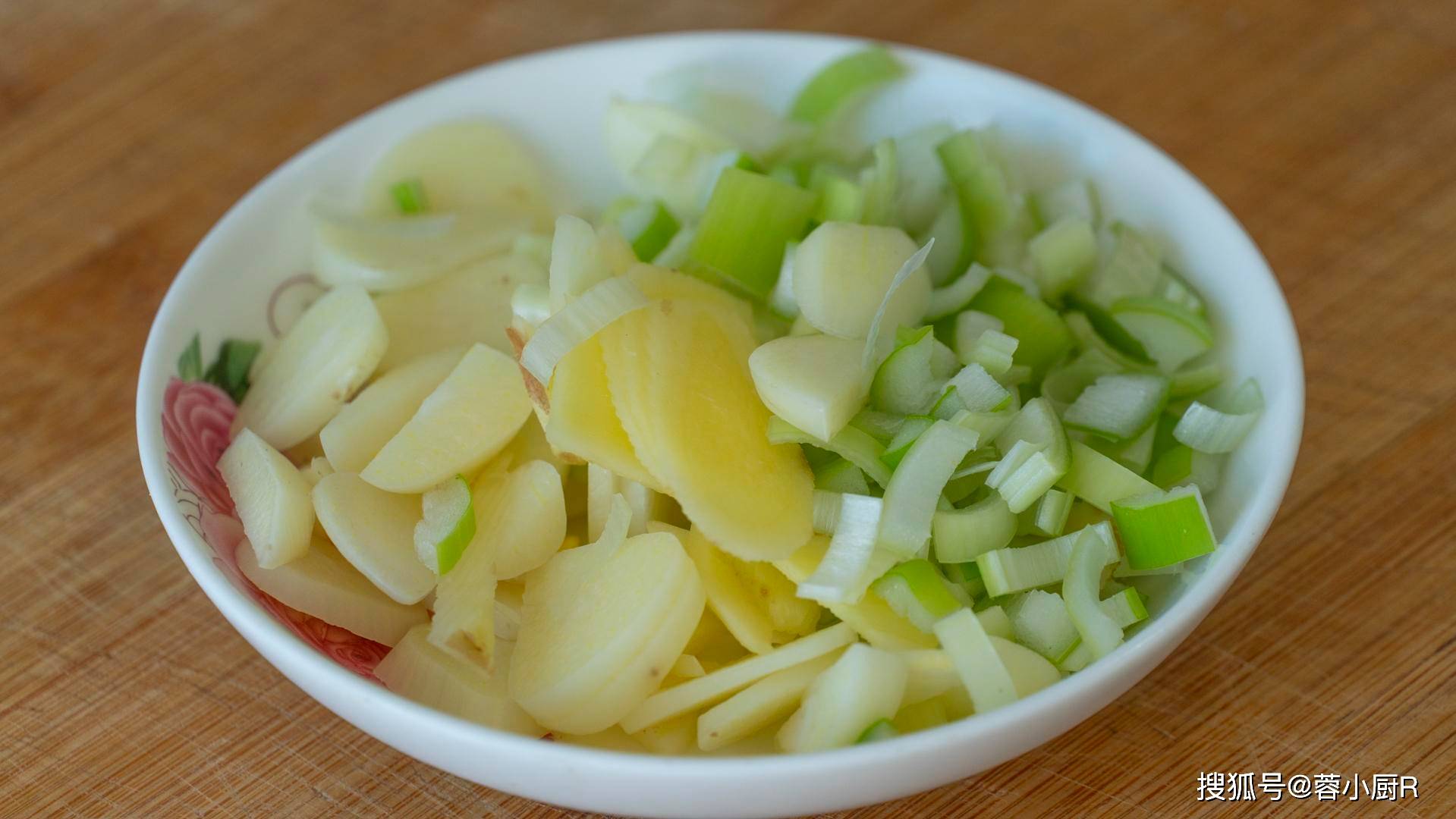 3、再来切着来切点葱姜蒜大料,大葱切葱花,生姜大蒜切片。