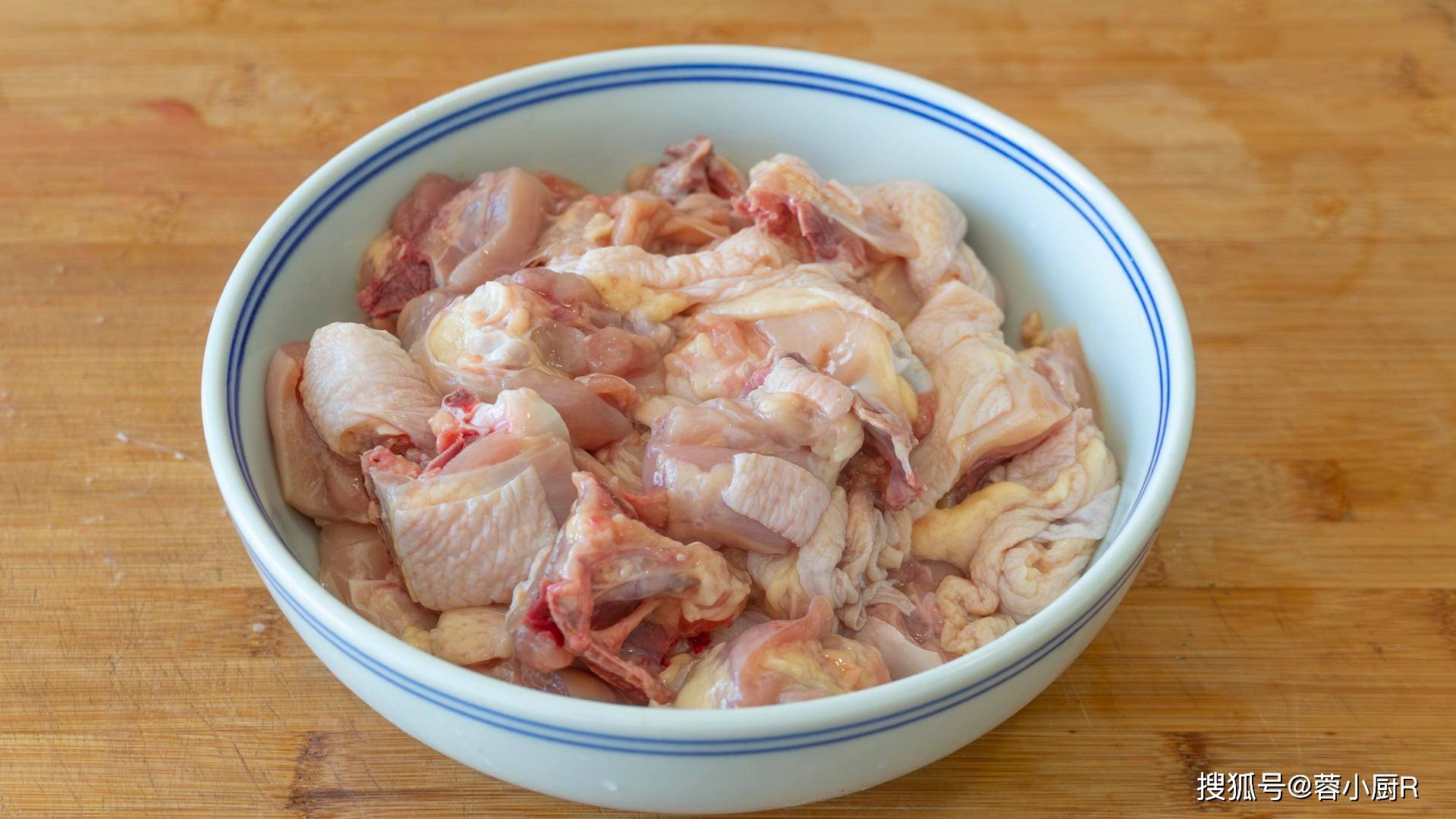 1、半边鸡腿2个,加盐、面粉、清水清洗干净。剁成小块儿,然后装入碗里,再加清水泡1个小时。