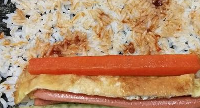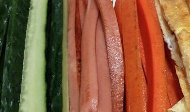 另外,把准备好的火腿条和胡萝卜条用小火煎一下。其次,准备一张寿司席子铺上一张紫菜,然后把大米均匀的铺在紫菜上面上面抹上一些自己喜欢吃的酱料,把所有的材料放上去,利用寿司席子把寿司慢慢的卷起来,可以压出自己喜欢的形状。